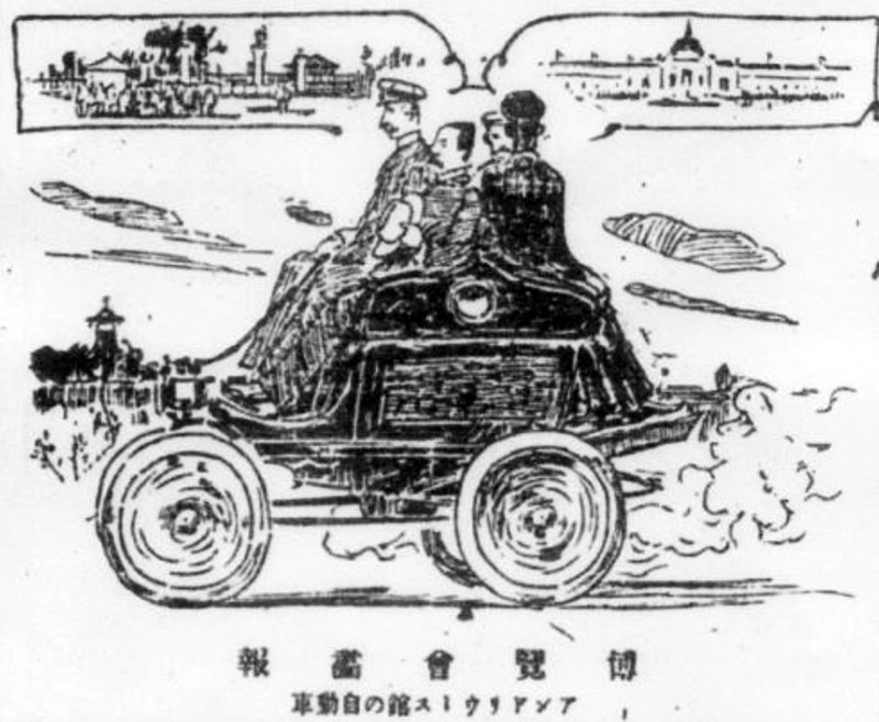 Sept automobile américaines sont exposées à la 5e Exposition Industrielle Nationale d'Osaka (第五回内国博覧), en 1903. Le bus de Kyoto est aussi présent. Elles vont inspirer M. Torao Yamaba pour construire le premier véhicule automobile entièrement japonais, un charriot à vapeur réalisé en 1904 pour transporter sa famille.