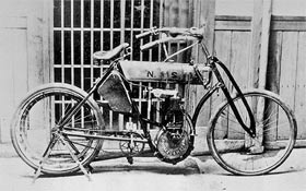 Première motocyclette de fabrication japonaise, par Shimazu Narazo. Modèle NS de 1909 |