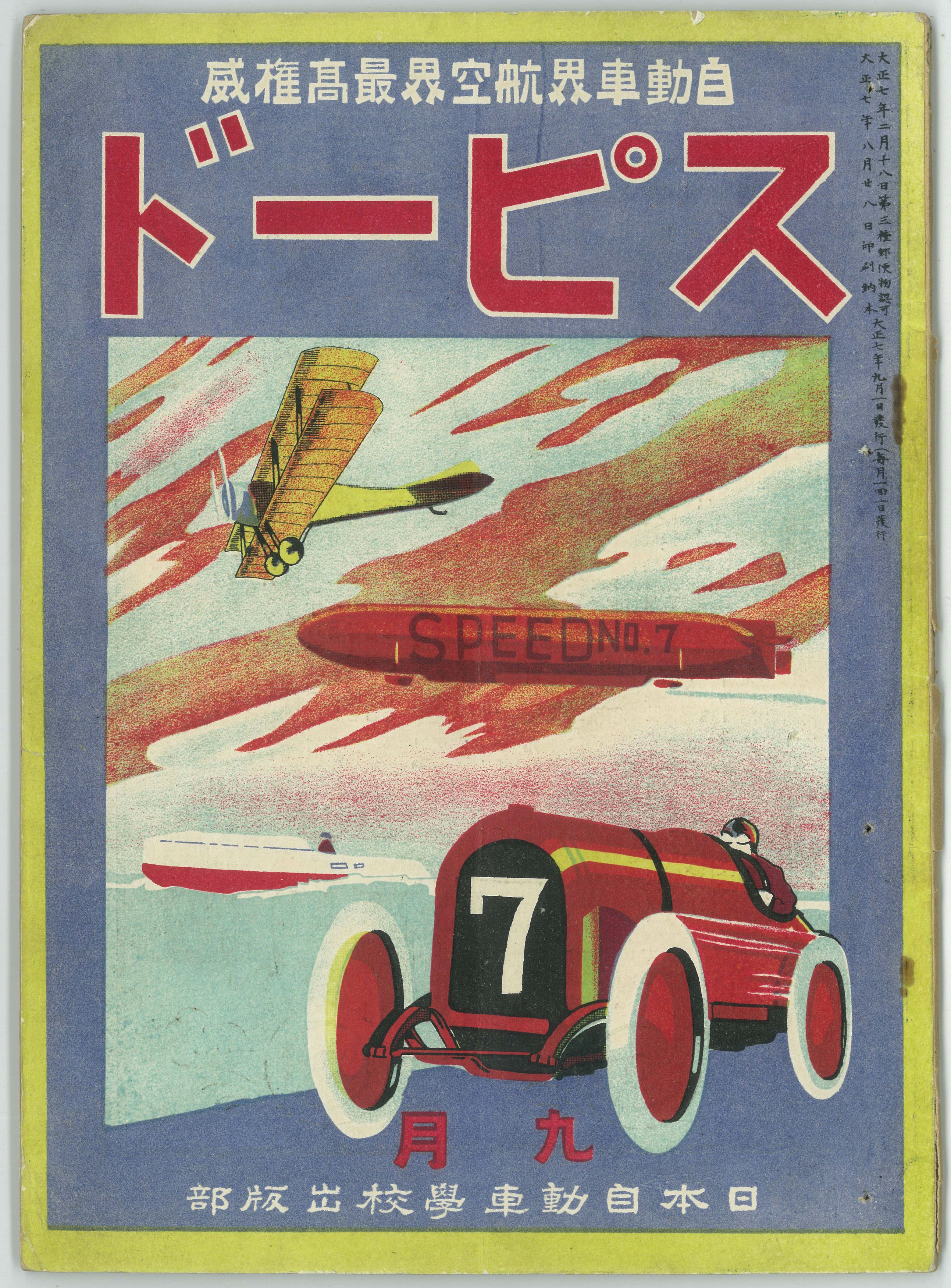 Speed est le premier magazine japonais consacré à l'automobile et à l'aviation. Le N°1 paraît en 1918. Il est édité par la Nihon Automobile School