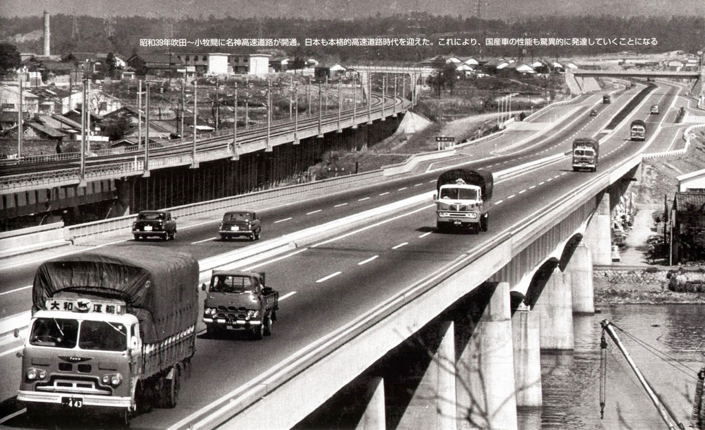 A la fin des années 50, un plan national de construction d'autoroutes est lancé. Plusieurs compagnies sont mandatées pour des tracés définis. La première portion d'autoroute est ouverte en 1963 entre Osaka et Kyoto, par la suite la Meishin Expressway reliera Kobe à Nagoya. La Tomei Expressway permet de rouler entre Tokyo et Nagoya depuis 1969. La Shuto Expressway est un réseau de voies rapides à la périphérie de Tokyo. Initié en 1962 pour désengorger la métropole, il compte 280 km dans les années 2000.