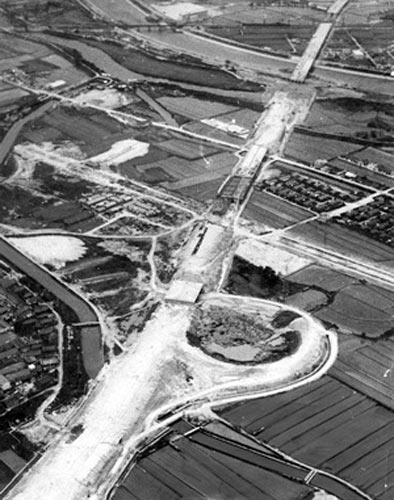 Les Jeux Olympics d'été 1964 se déroulent à Tokyo. Un nombre important d'ouvrages sont réalisés, des bâtiments, dont le stade. Le réseau du métro est étendu, le monorail est construit et le premier train à grande vitesse du monde, le Shinkansen, est développé. Dès 1964, ce bullet train relie Tokyo à Shin-Osaka par la Tokaido Line à une vitesse de plus de 200 km/h. La "Metropolitan Expressway" traverse la métropole de part en part en survolant la rivière Edo. L'autoroute en vient à couvrir Edobashi, le centre historique de la ville.