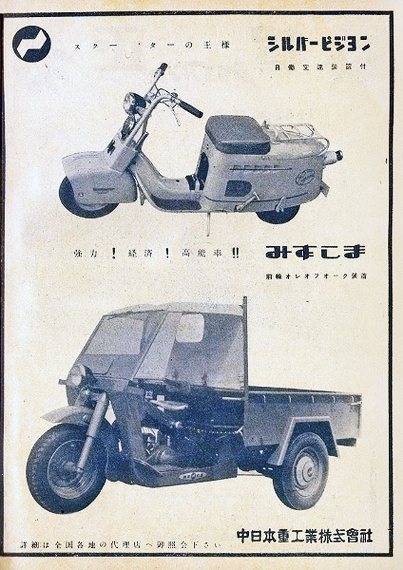 Suite à la seconde Guerre Mondiale, le Japon n'a plus le droit de fabriquer d'armes ni d'avion. Mitsubishi, qui était le constructeur des meilleurs avions de chasse de l'armée japonaise doit se recycler. Parallèlement au tricycle Mizushima, un petit scooter est lancé en 1946.