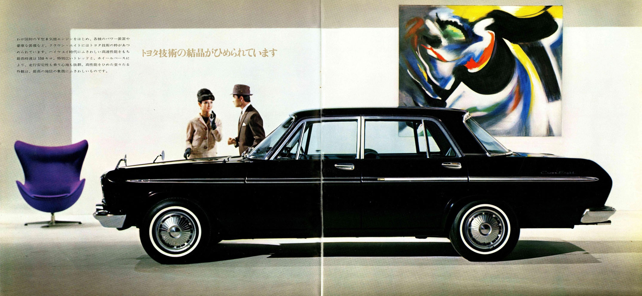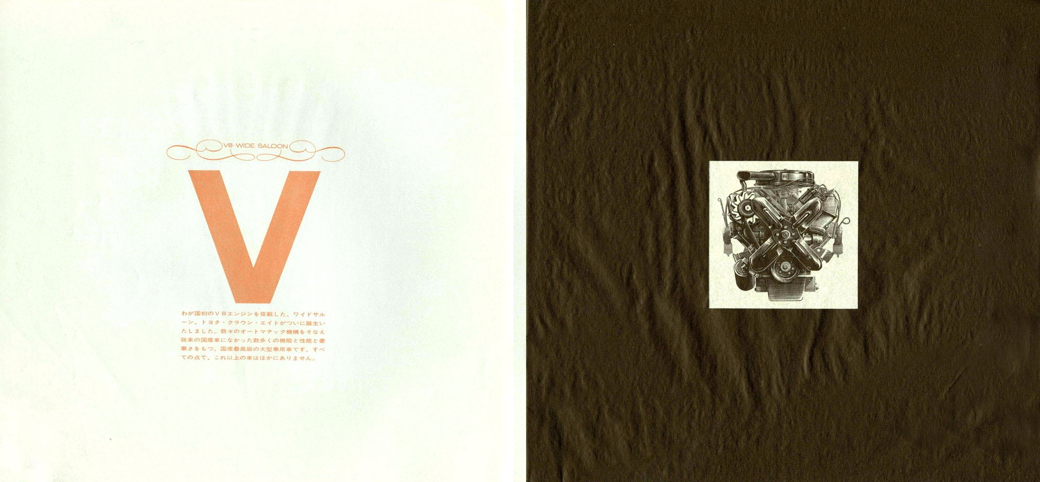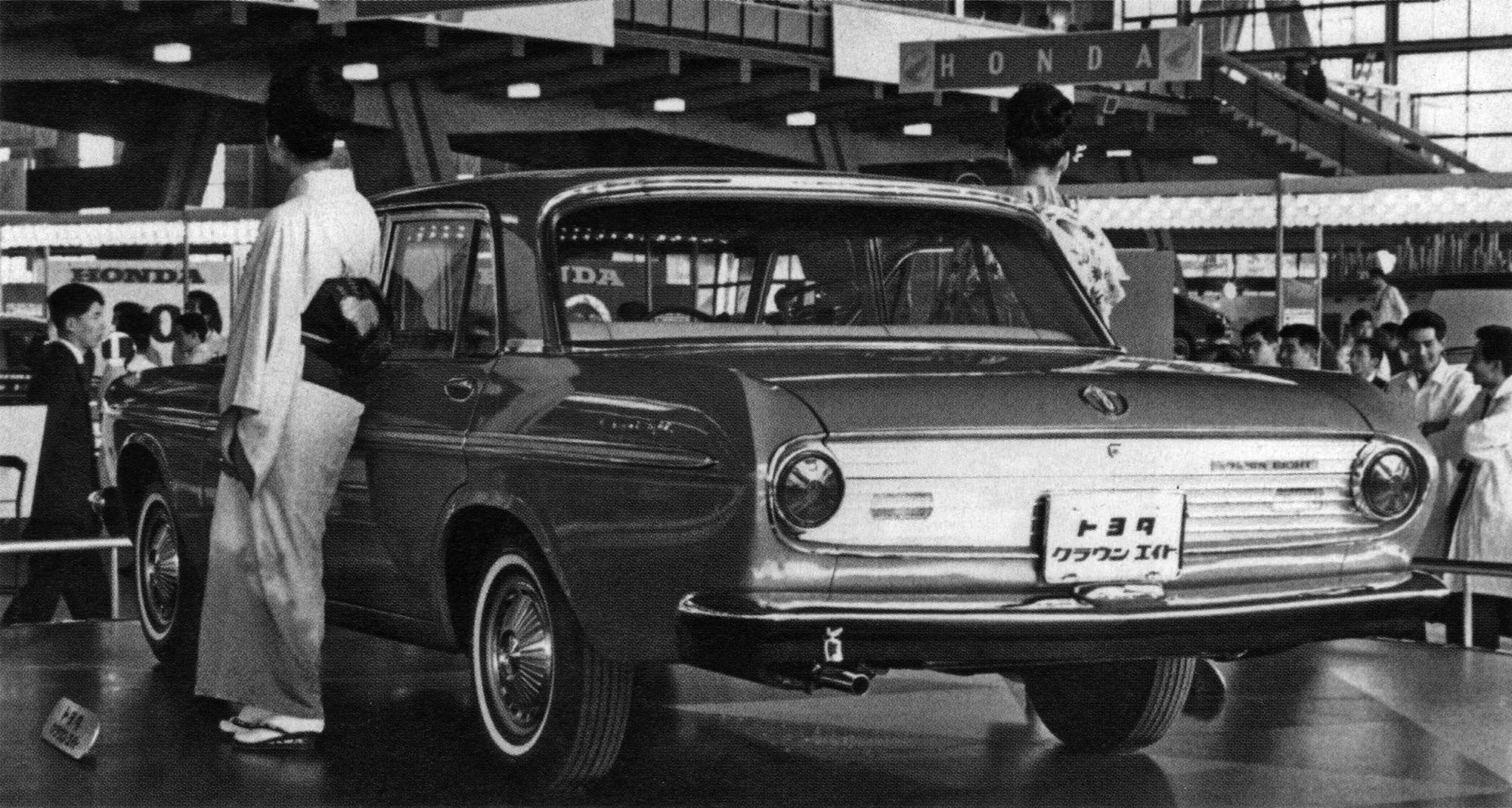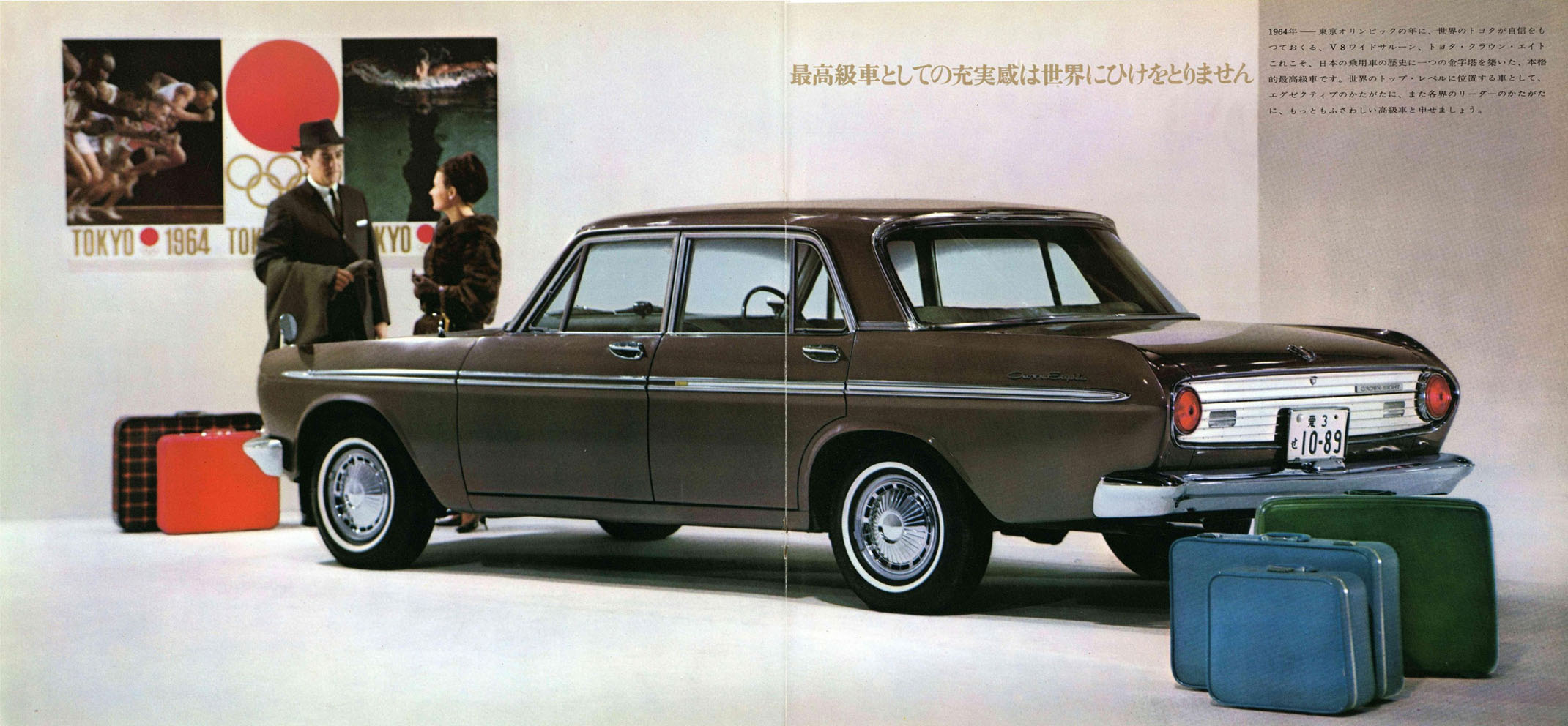 Au salon de l'automobile de Tokyo de 1963 est présentée la Crown Eight (VG10), une berline luxueuse destinée au marché japonais uniquement, et plus spécialement aux membres du gouvernement. Plus grande que la Crown normale, elle est mue par un moteur V8 de 2599 cm3. Elle ne remporte pas les faveurs des officiels qui lui préfèrent la Nissan Prince Royal mais elle entre tout de même en production.