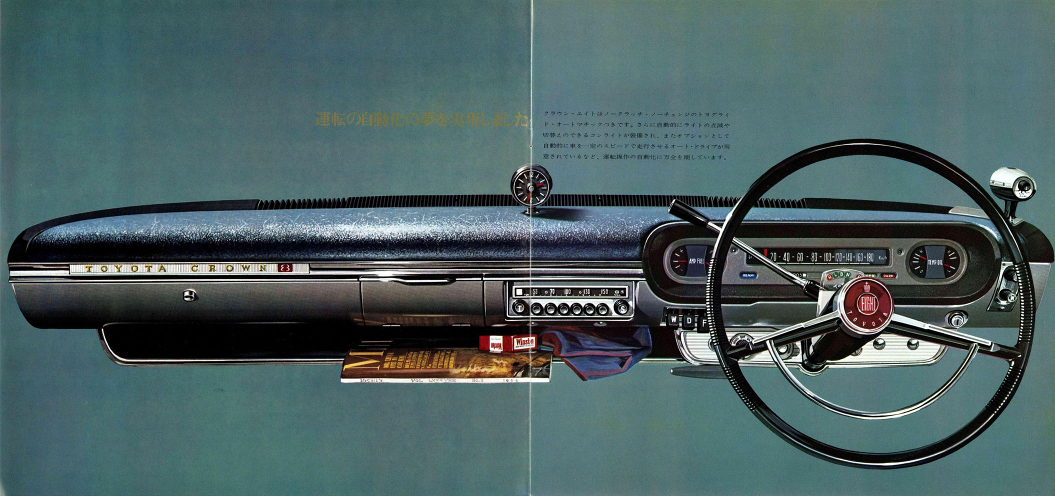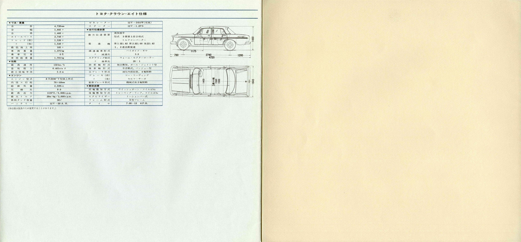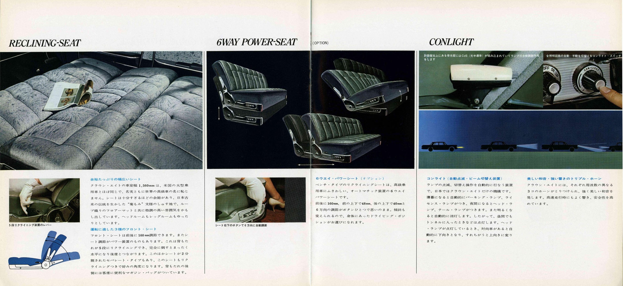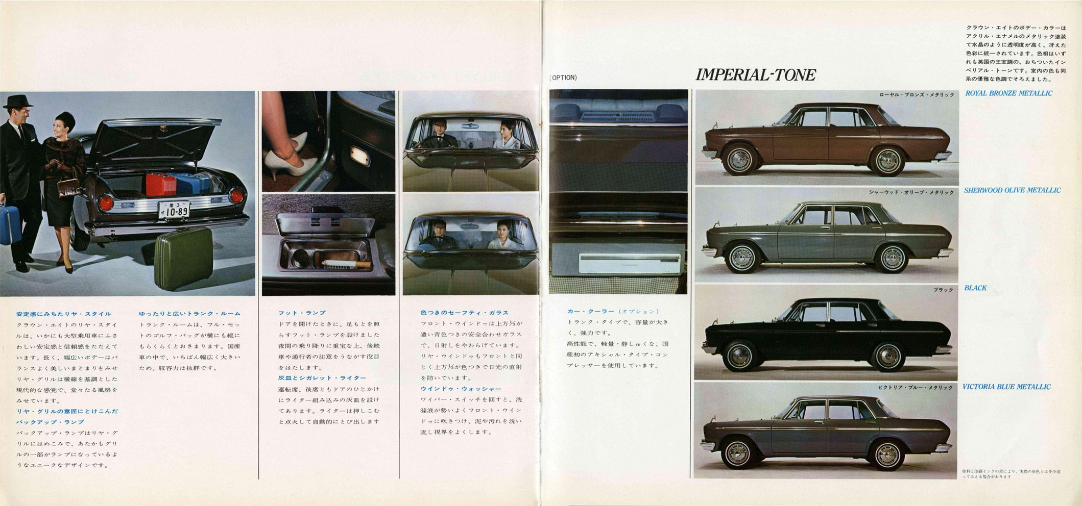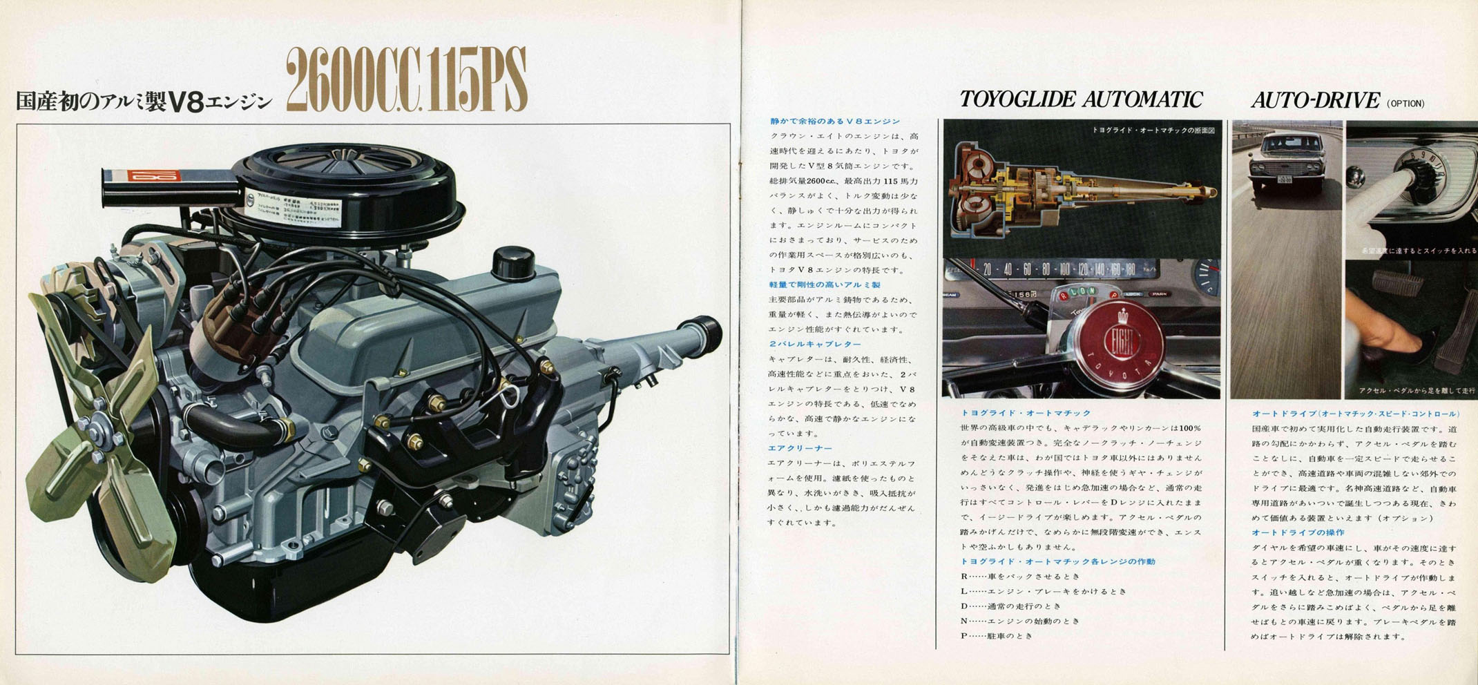 Au salon de l'automobile de Tokyo de 1963 est présentée la Crown Eight (VG10), une berline luxueuse destinée au marché japonais uniquement, et plus spécialement aux membres du gouvernement. Plus grande que la Crown normale, elle est mue par un moteur V8 de 2599 cm3. Elle ne remporte pas les faveurs des officiels qui lui préfèrent la Nissan Prince Royal mais elle entre tout de même en production.