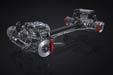 C'est une pure propulsion avec moteur central à l'avant et les roues arrière motrices. Les suspensions sont à double triangulation tout aluminium aux quatre coins. Des freins Brembo avec disques carbone/céramique sont logés dans des jantes de 20''. Michelin a développé des pneus Pilot Sport Cup 2 spécialement pour ce modèle.
