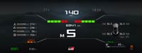L'intérieur est traité sur un style sportif, entendez par là masculin. Cuir et Alcantara rouge sur fond noir mat et brillant. Les instruments sont regroupés sur un écran digital placé derrière le volant. Une tablette placée au centre du tableau de bord, et pas vraiment intégrée, permet de commander tactilement certaines fonctions. Le volant contient des boutons de commande sur les branches, deux palettes en arrière et deux molettes satellites. C'est joli et fonctionnel, mais il n'y a rien de particulièrement nouveau.