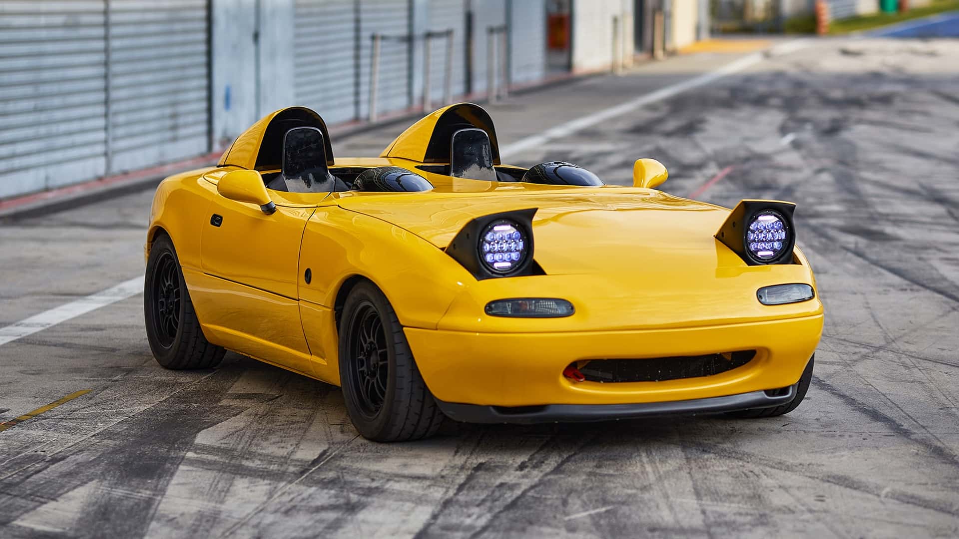 Le châssis est renforcé conférant un style à seuil haut et des demi-portières. La suspension est équipée d'amortisseurs réglables, les freins sont remplacés par des unités plus performantes et les jantes de 15'' proviennent de chez Enkei.