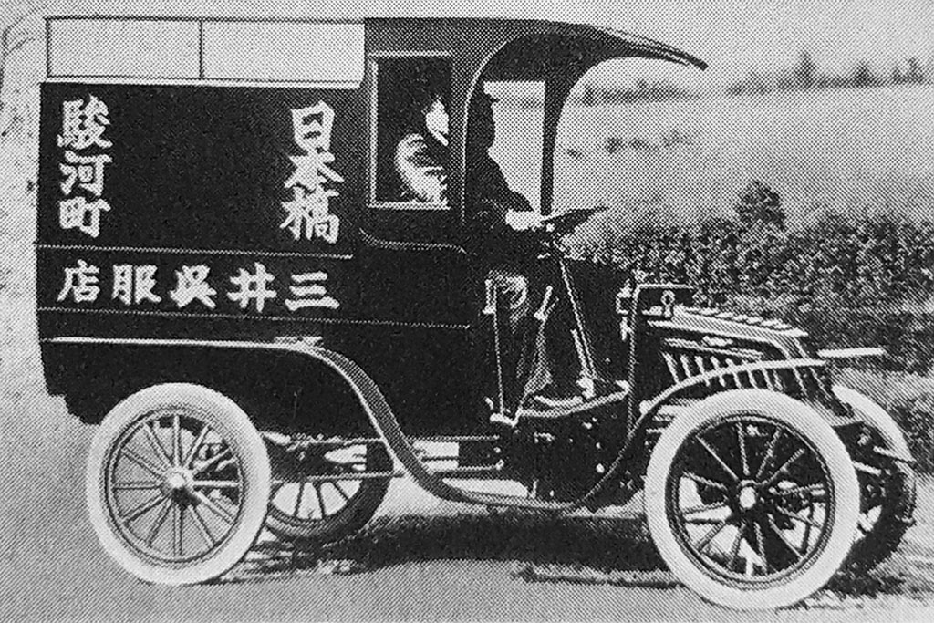 Le grand magasin Mitsui de Nihonbashi commande une automobile commerciale à l'une des compagnie de trading. C'est une Clément-Bayard française qui est livrée en 1902. Le moteur bicylindre développe 10 CV et est monté sur un châssis en bois. La transmission est à 2 vitesses par cardan. Ce véhicule de livraison est une excellente publicité pour le magasin.