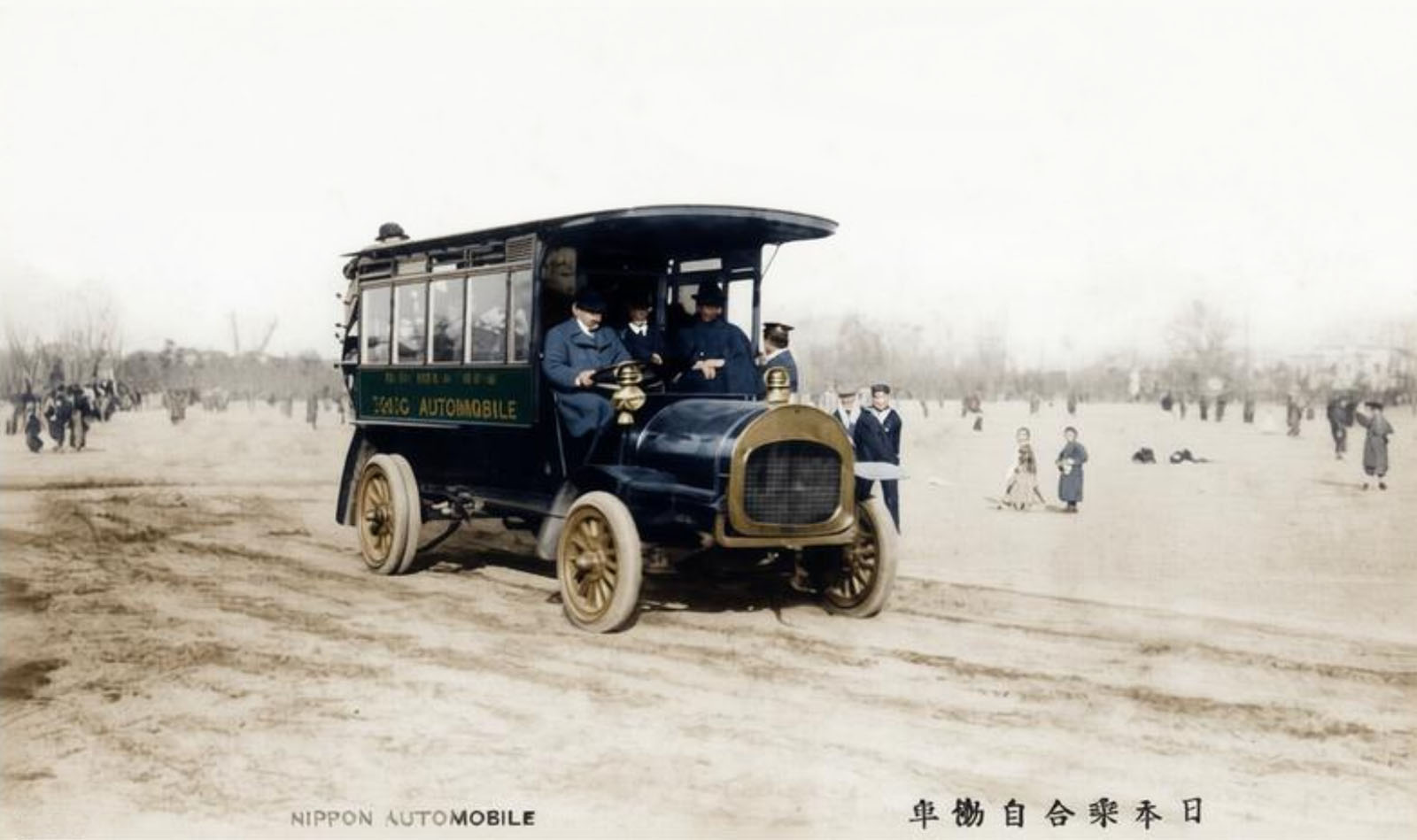 Le plus ancien journal imprimé nippon, fondé en 1872, Hochi Shimbum, acquiert une Cadillac en 1907. En 1910, le journal publie une carte postale publicitaire représentant deux chiens roulant dans une Torpedo.