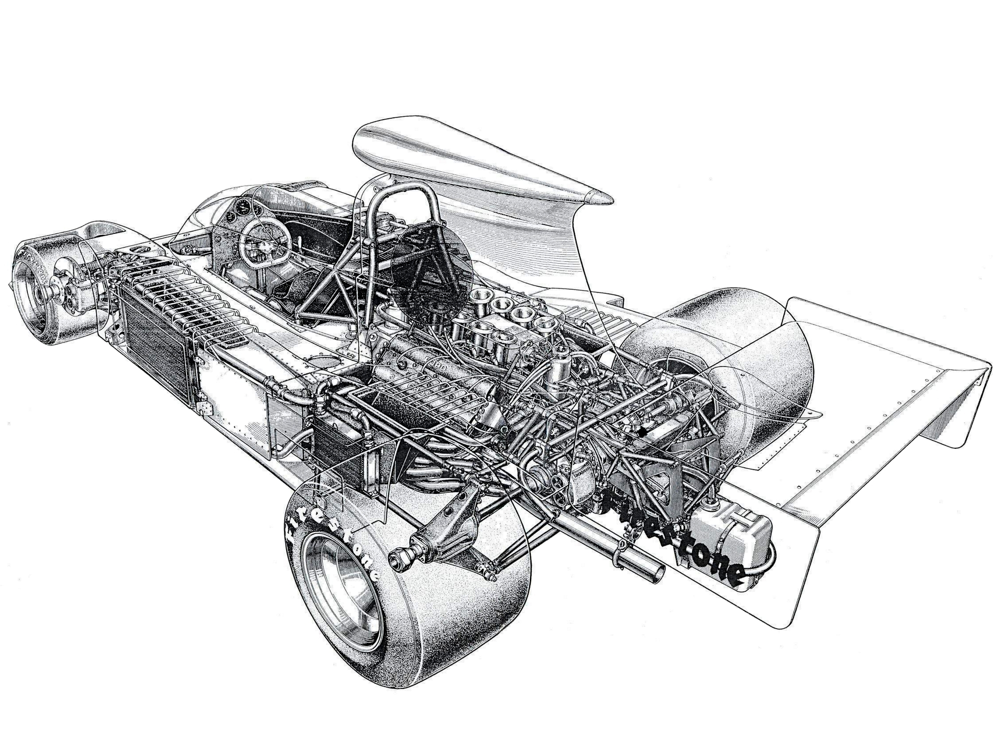 Mis à part Ferrari et BRM, tout le monde utilise le moteur Ford Coswoth DFV V8 de 3.0 litres avec une boîte Hewland à 5 rapports. Cette situation, fait dire que les F1 sont devenues des "kit cars". Il suffit de fabriquer un châssis ou même d'en acheter un tout fait aux spécialistes, d'y placer un Cosworth et on peut participer au Championnat du monde de Formule 1. D'une certaine manière ça rend la compétition intéressante parce que la différence entre les teams se joue plus sur l’habileté des ingénieurs et des pilotes que sur la mécanique. A cette époque ce moteur développe 465 ch.
