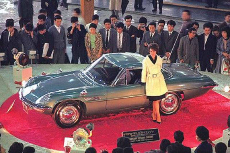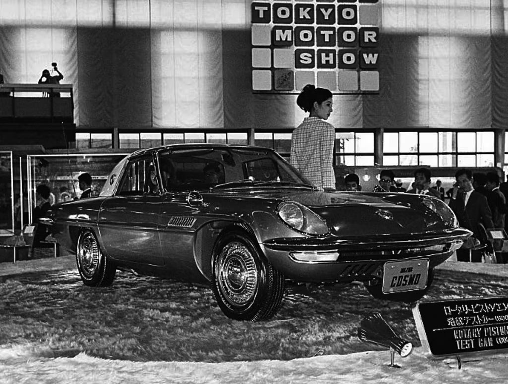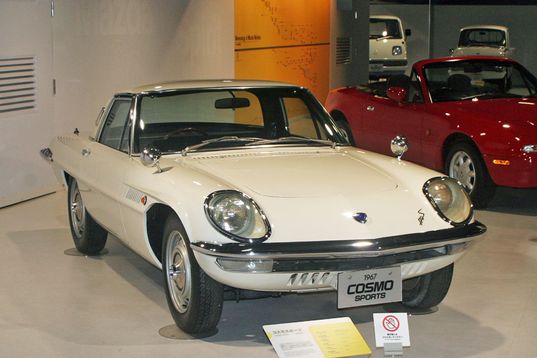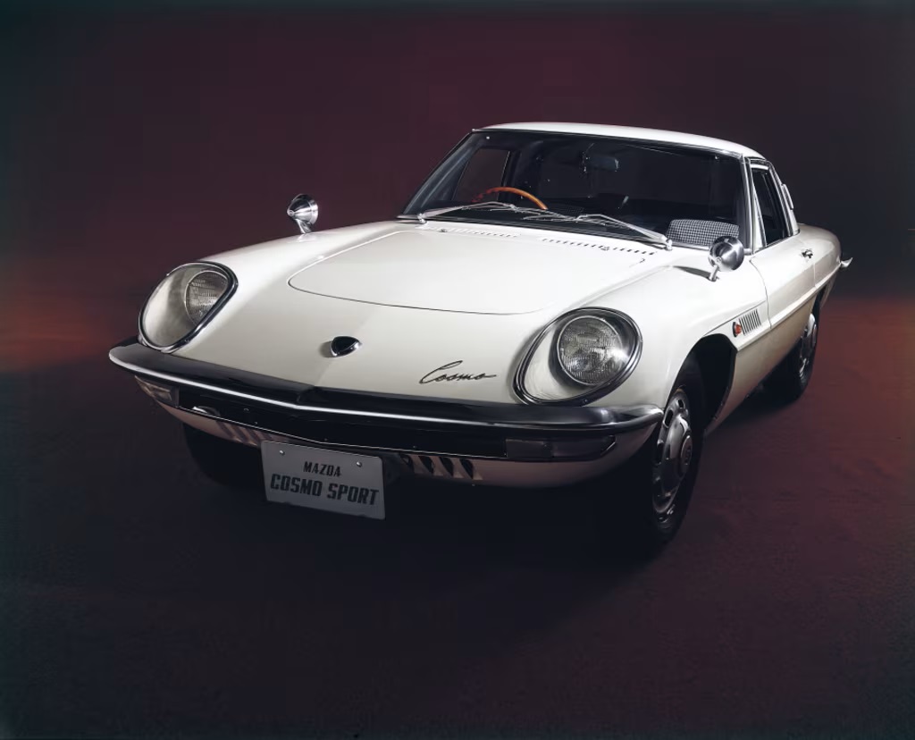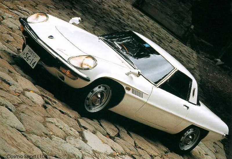 Mazda est l'un des premier constructeur automobile à s'intéresser au moteur Wankel à piston rotatif. Les droits sont acquis en 1961 auprès un accord avec NSU. Le développement de ce moteur donne beaucoup de fils à retordre aux ingénieurs de Mazda. Au salon de Tokyo de 1963, Mazda expose le shéma de l'auto et de son moteur, puis l'année suivante est dévoilé le prototype de la Cosmo Sport.