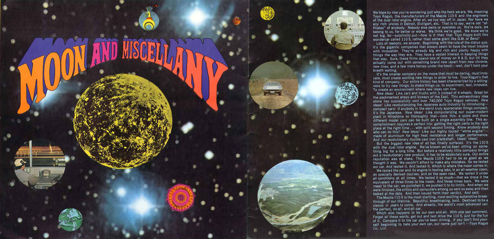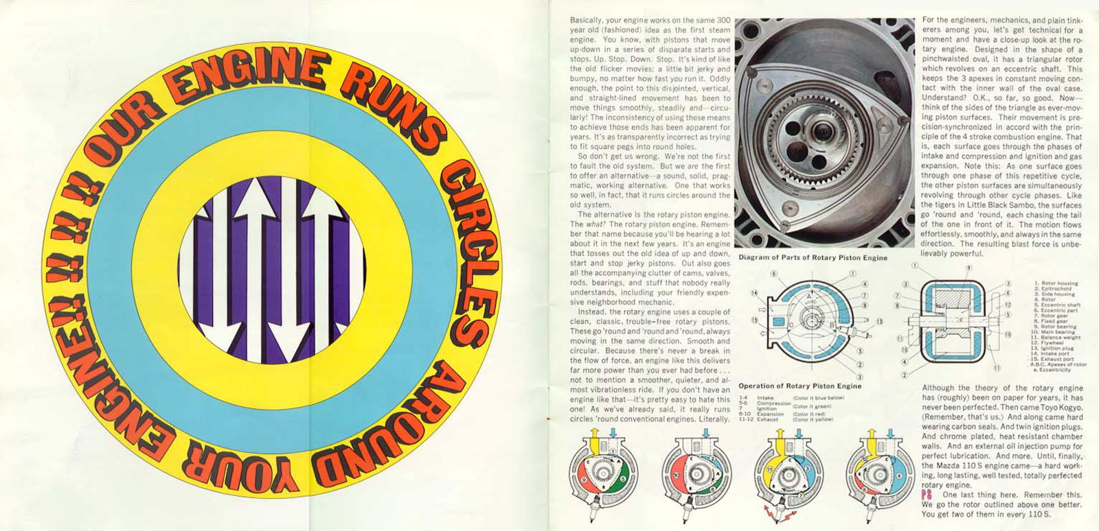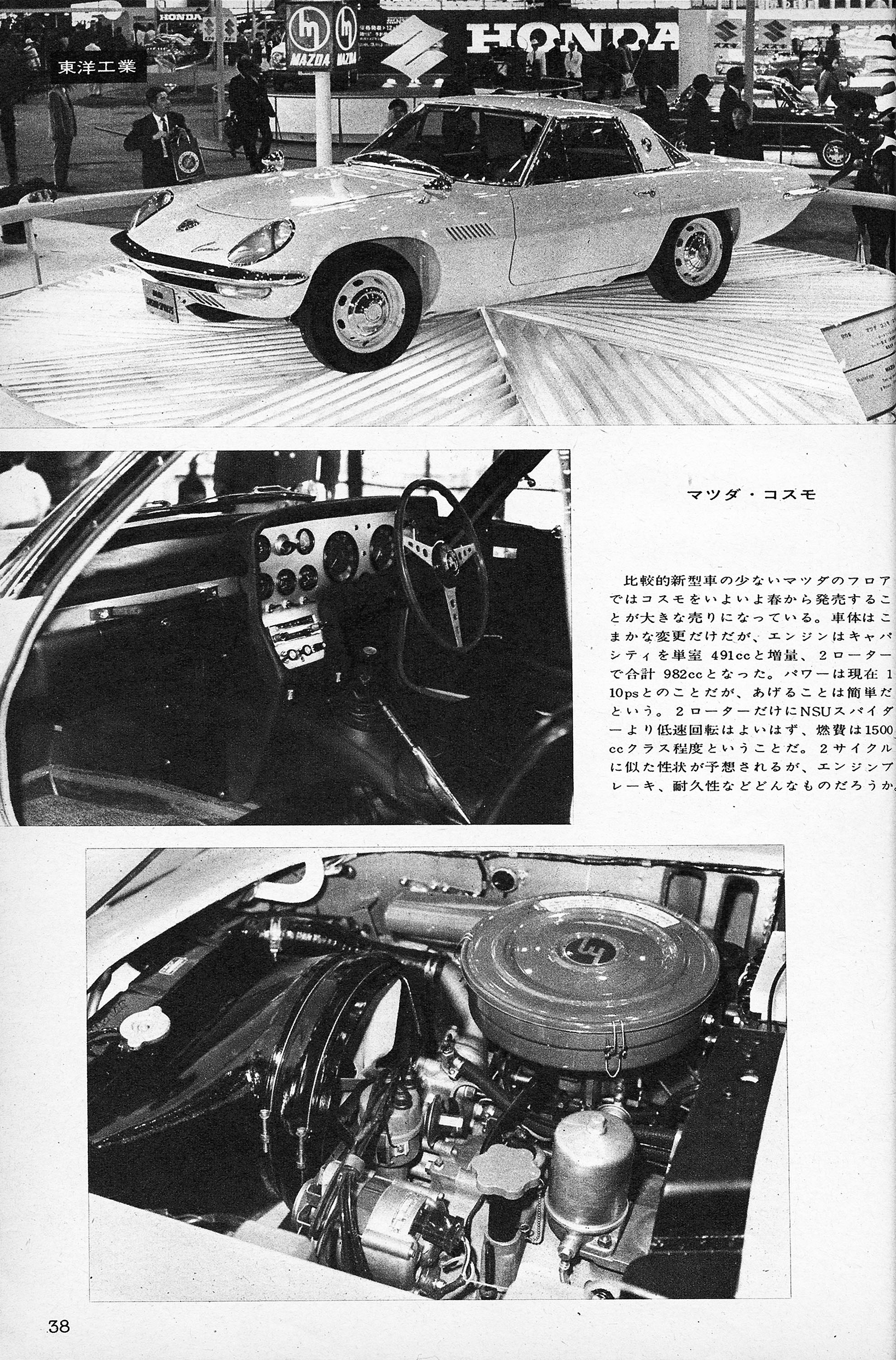 Mazda est l'un des premier constructeur automobile à s'intéresser au moteur Wankel à piston rotatif. Les droits sont acquis en 1961 auprès un accord avec NSU. Le développement de ce moteur donne beaucoup de fils à retordre aux ingénieurs de Mazda. Au salon de Tokyo de 1963, Mazda expose le shéma de l'auto et de son moteur, puis l'année suivante est dévoilé le prototype de la Cosmo Sport.