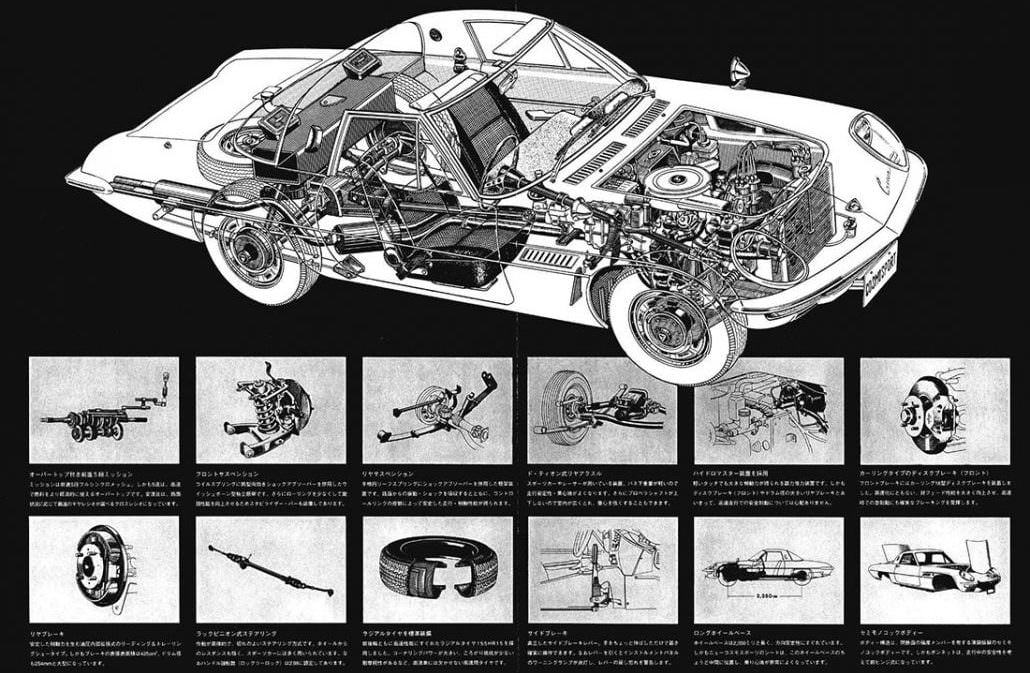 La compacité de ce moteur a permi de garder le capot très bas, donnant un aspect unique à la Cosmo qui peut alors atteindre 185 km/h en vitesse de pointe.
