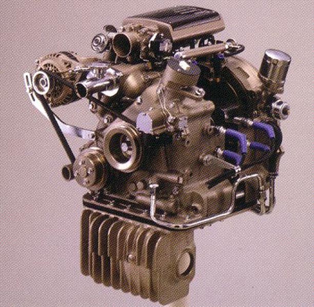 Un moteur rotatif placé à l’avant entraîne les roues arrières. Ce moteur expérimental RE10X est très spécial. C’est un birotor de 2x491 cm3 entièrement en aluminium. La surface des rotors et des chambre trochoïdes sont recouvertes d’une pellicule de céramique (cemet) qui fourni une protection exceptionnelle contre l'usure. En plus, les pistons ont des inserts en céramique autour des joints apex et au niveau du palier central.