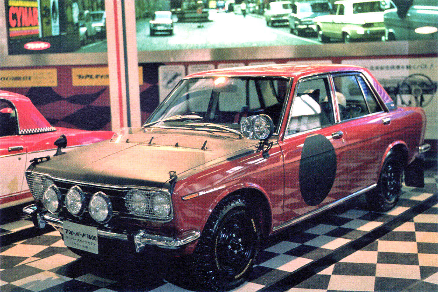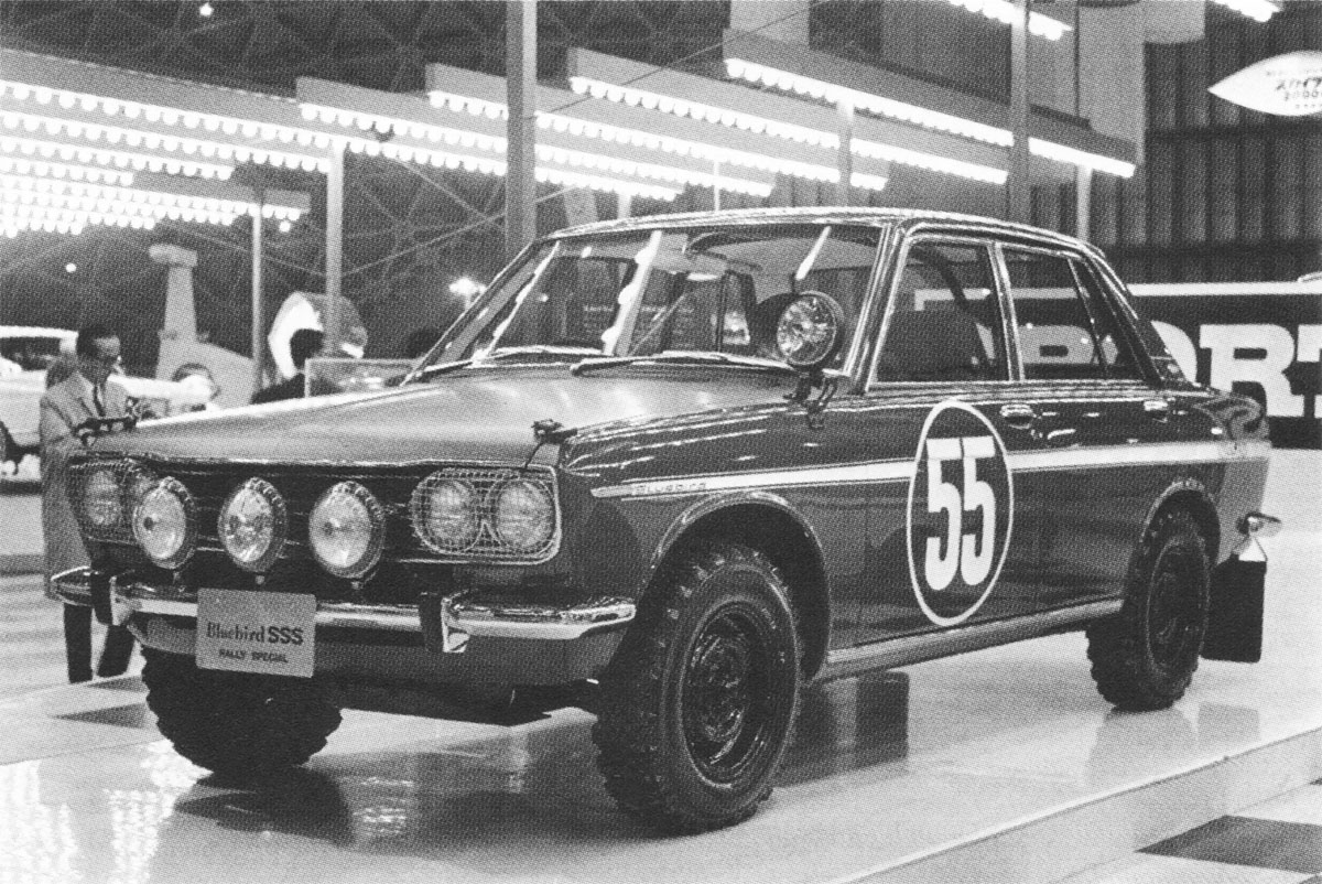 Au salon de Tokyo 1965, Nissan montre une Bluebird SSS préparée pour le rallye de Monte-Carlo qui a lieu en janvier 1966. Elle termine 59e au général et 4e de sa classe. Lannée suivante, ce sont 4 voitures qui sont engagées. Le meilleur résultat est une Bluebird à la 58e place.