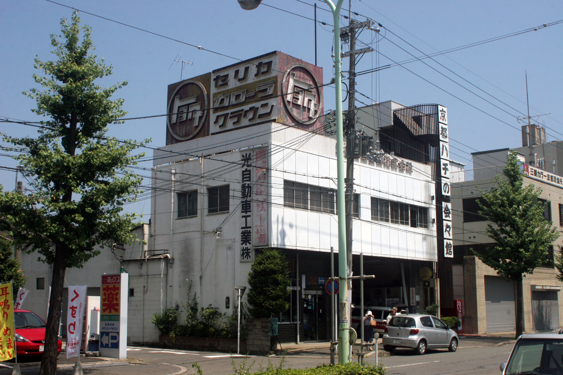 Ancien concessionaire Toyota des années 70, (Celica, Corolla, Crown) et garage Hikari Jidosha Kogyo, Kyoto 2006 |